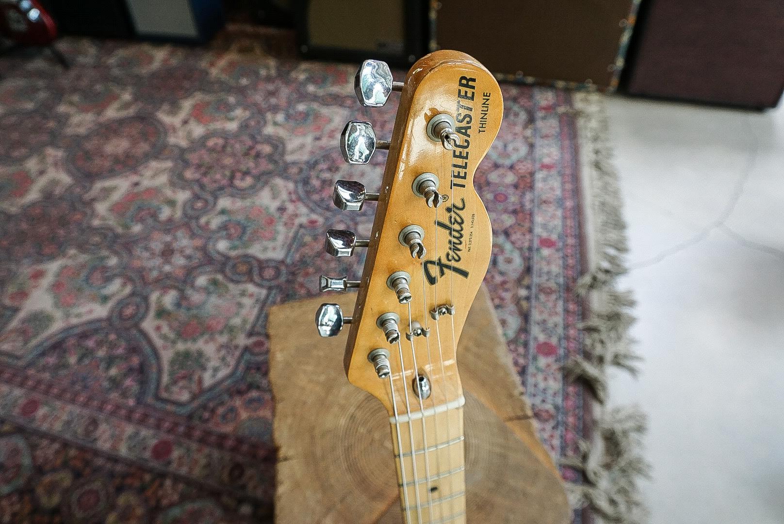 This 1975 Fender Thinline Telecaster is in excellent original condition! Lightweight at only 7 lbs, 4 oz with a 3-bolt neck that’s really comfortable! Nut width- 1.62″ and a typical flat “U” neck shape/profile, larger then usual for the 70’s at the 1st fret= .86″ and at the 12th= .88″ so there is very little taper. Frets appear original- and feel great! Original electronics including Seth Lover Wide Range Humbuckers! Newer (Strat style) switch tip.